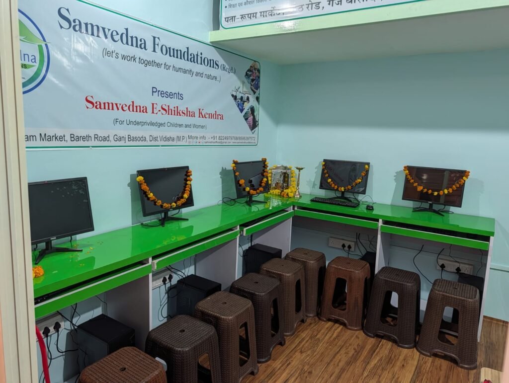 आज दिनांक 24.10.2025 दिन शुक्रवार को हमारे गंज बासौदा शहर में संवेदना फाउंडेशन्स के तत्वाधान में ई-शिक्षा केन्द्र का शुभारंभ कार्यक्रम नगर के विधायक महोदय श्री हरिसिंह जी रघुवंशी, श्री गोविंद जी पटेल, श्री किशन जी महाराज, श्री निरंजन सिंह जी रघुवंशी (पूर्व मार्केटिंग अध्यक्ष), श्री छोटेलाल जी रघुवंशी (ठेकेदार), श्री राजा जी रघुवंशी, श्री राहुल जी पलोड़ आदि गणमान्य की उपस्थिति में सम्पन्न हुआ। संवेदना फाउंडेशन्स की इस पहल में नगर के गरीब बच्चों एवं महिलाओं को निःशुल्क कम्प्यूटर शिक्षा एवं स्टेनोग्राफी की शिक्षा प्रदान की जावेगी एवं सर्टिफिकेट प्रदान किये जायेंगे।