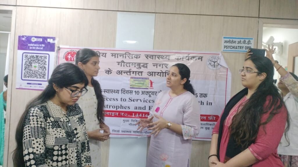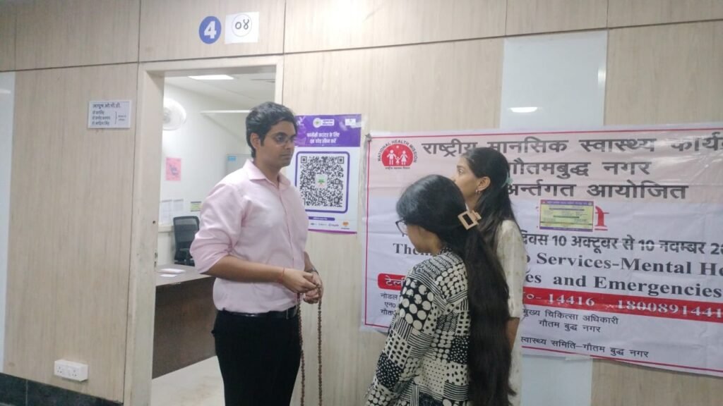 आज दिनांक 29.10.2025 को नोडल अधिकारी एनसीडी के नेतृत्व मे एवम मुख्य चिकित्सा अधिक्शिका डॉक्टर अजय राणा संयुक्त जिला चिकित्सालय सेक्टर 39 नोएडा गौतम बुद्ध नगर के अधियक्ष्ता में मानसिक स्वास्थ्य जागरुकता कार्यक्रम एवं नुक्कड़ नाटक का आयोजन मनोरोग विभाग जिला संयुक्त चिकित्सालय के सहयोग से किया गया 1