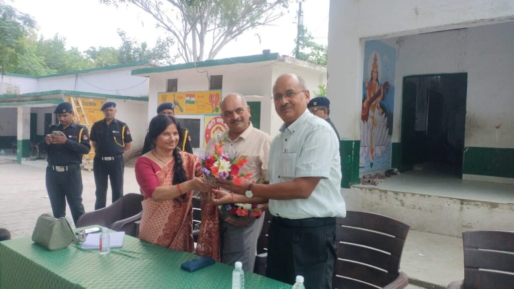 स्कूल की प्राचार्य शशि शर्मा गुलदस्ता देकर AGM आरके करौली और एस के यादव जी का अभिवादन किया