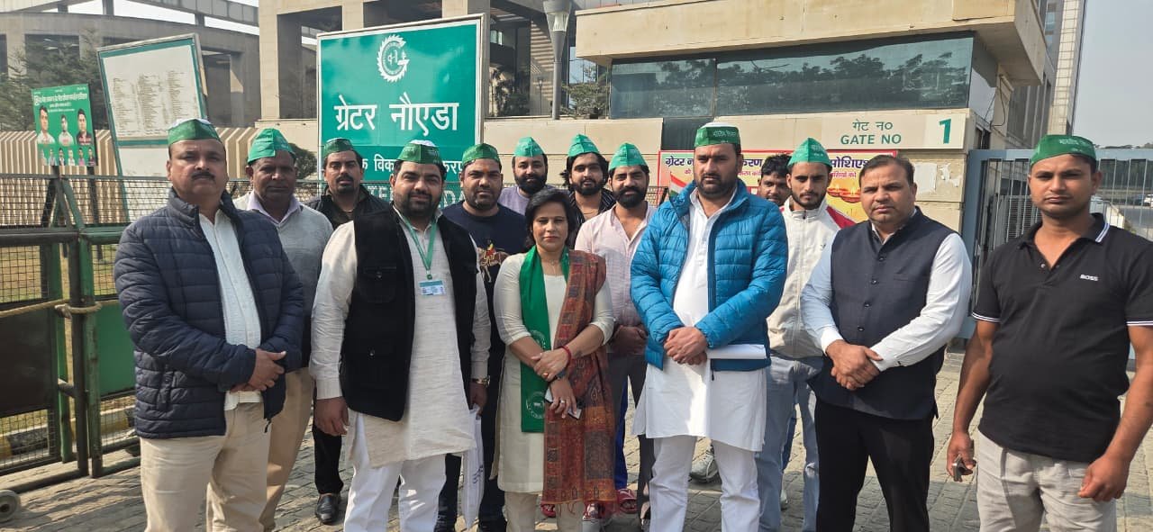भारतीय किसान यूनियन (बलराज) की राष्ट्रीय संयोजक एंव महिला विंग राष्ट्रीय अध्यक्ष रेखा सिवाल के नेतृत्व मै संगठन के पदाधिकारियों व ग्रेटर नोएडा विकास प्राधिकरण की एसीईओ लक्ष्मी सिंह की मध्यसता मै किसानों की समस्याओ को लेकर वार्ता हुई। भारतीय किसान यूनियन (बलराज) के यूथ उत्तर प्रदेश अध्यक्ष विपिन खारी ने किसानों की लीजबैक, 4%6% 10% आवासीय भूखण्ड 64,7%अतिरिक्त मुआवज़ा गांवों के सम्पूर्ण विकास, तिलपता गांव के मुख्य मार्ग पर जल भराव के कारण जाम से निजात एंव तालाब के सौन्दर्यीकरण जेसी मागों को बिन्दू वार मजबूती से पक्ष रखा एसीईओ लक्ष्मी सिंह ने आश्वासन दिया है कि किसानों की सभी समस्याओ का शीघ्र निस्तारण किया जायेगा और तिलपता गांव के मुख्य मार्ग पर कार्य शुरू कर दिया गया है जो शीघ्र सम्पूर्ण पूरा किया जाएगा और ग्रेटर नोएडा के गाँवों के विकास कार्य के लिए सर्वे कर जल्द कार्य शुरू किए जायेगें। जिलाध्यक्ष योगेश वैष्णव ने कहा कि यदि किसानों की समस्याओ निस्तारण शीघ्र नही किए गए तो प्राधिकरण के विरोध मै भारतीय किसान यूनियन (बलराज) विशाल आन्दोलन करेगी और प्राधिकरण के अन्दर किसी भी अधिकारी व कर्मचारी को प्राधिकरण के अन्दर नही जाने दिया जायेगा।