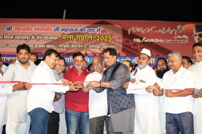 सहारनपुर। ऐतिहासिक मेला गुघाल के सांस्कृतिक कार्यक्रमों की श्रृंखला में खान वादा बदर के सहयोग से नगर निगम द्वारा इस्लामिया कॉलेज के मैदान में आल इण्डिया मुशायरे का आयोजन किया गया। उद्घाटन मुख्य अतिथि प्रवासी भारतीय और वरिष्ठ समाजसेवी अजय गुप्ता, अनिल गुप्ता, समाजसेवी महेन्द्र तनेजा, मुशायरा संयोजक पार्षद मंसूर बदर, मसूद बदर, नवाज़िश खान, मेला चेयरमैन नीरज शर्मा आदि ने रिबन काटकर व शमा रोशन कर किया। तड़के पांच बजे तक चले मुशायरे में हजारों श्रोताओं की भीड़ ने शेर के हिसाब से शायरों को दाद दी। मुख्य अतिथि अजय गुप्ता ने इस अवसर पर नगर पालिका के पूर्व चेयरमैन अय्यूब हसन बदर को भी स्मरण किया।